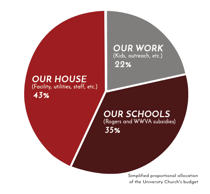 The University Church budget funds many important aspects of our local ministry. Although pastors' salaries are funded by donations marked "tithe", the University Church budget is what subsidizes our amazing K-12 school programs at Walla Walla Valley Academy and Rogers Adventist School. It also makes our worship services and broadcast ministry possible. Thank you for your generous and systematic support!